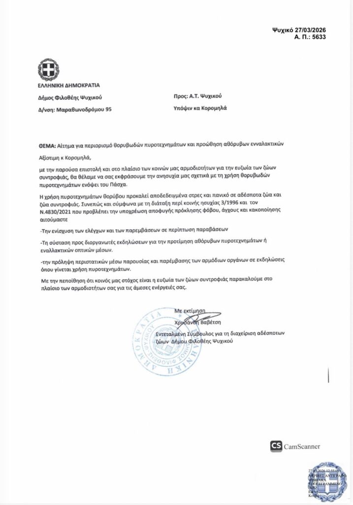 Με αφορμή τη σημερινή Παγκόσμια Ημέρα Αδέσποτων Ζώων, ο Δήμος Φιλοθέης-Ψυχικού και το Τμήμα Διαχείρισης…