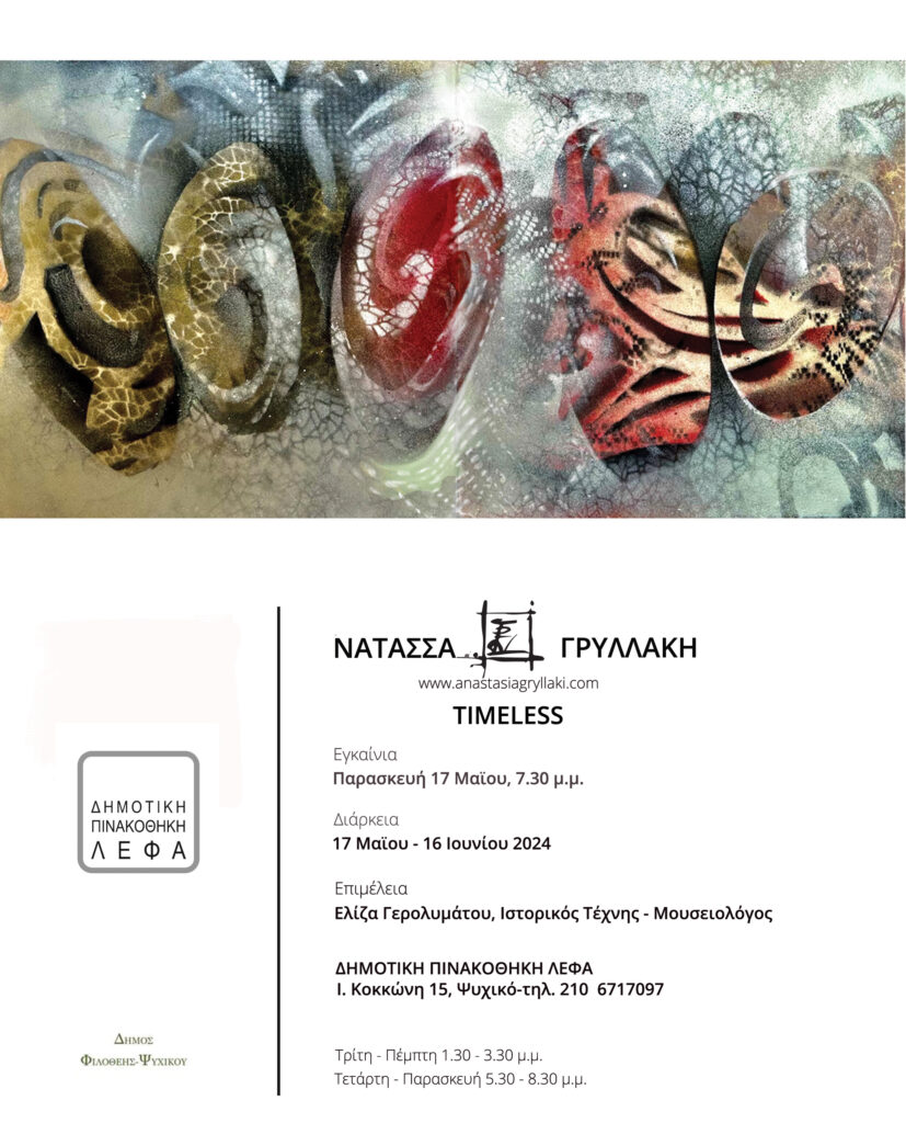 ΝΑΤΑΣΣΑ ΓΡΥΛΛΑΚΗ TIMELESS ΕΓΚΑΙΝΙΑ: Παρασκευή 17 Μαΐου 2024, 7.30 μμ. ΔΙΑΡΚΕΙΑ ΕΚΘΕΣΗΣ: 17 Μαΐου – 7 Ιουνίου 2024 Η Δημοτική Πινακοθήκη Λέφα στο Ψυχικό έχει την τιμή και την χαρά […]