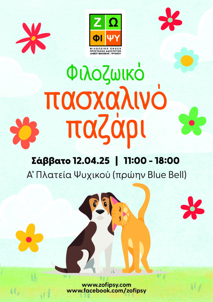 Το Σάββατο 12 Απριλίου 2025 και ώρες 11:00 – 18:00, στην Α΄ Πλατεία Ψυχικού (πρώην Blue Bell) η ΖΩ.ΦΙ.ΨΥ. διοργανώνει το Φιλοζωϊκό Πασχαλινό Παζάρι της! Εκεί θα βρούμε λαμπάδες και δώρα, […]