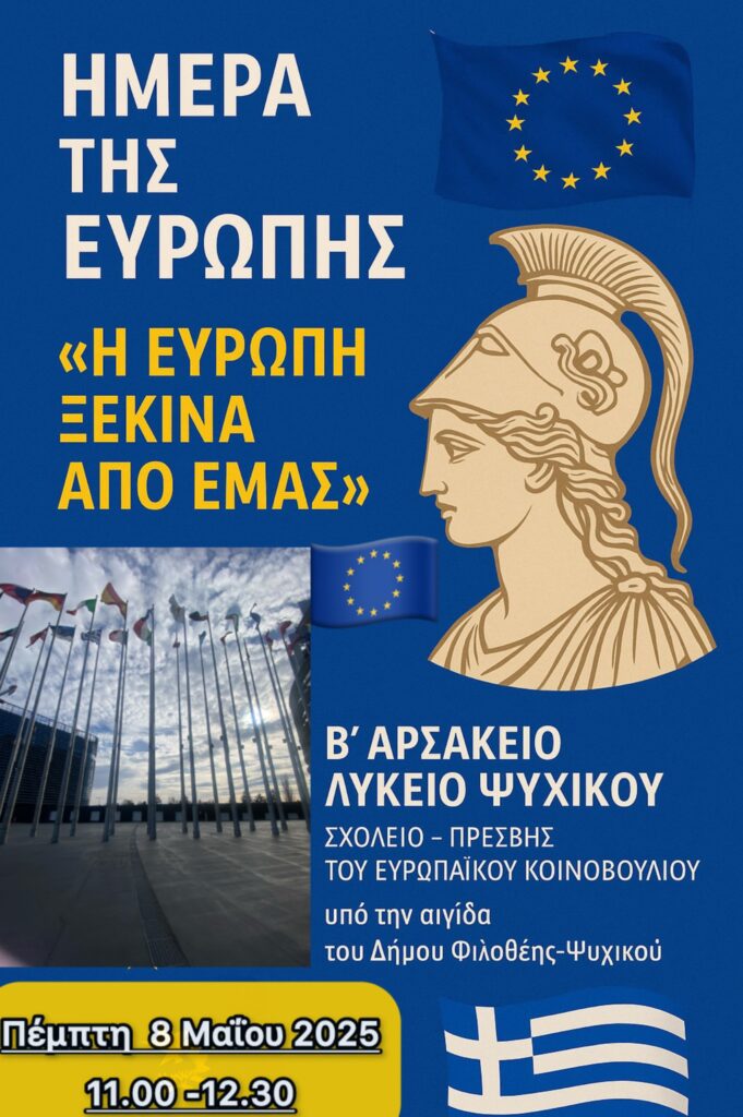 Με αφορμή την Ημέρα της Ευρώπης που γιορτάζεται κάθε χρόνο στις 9 Μαΐου, το Β’ Αρσάκειο Λύκειο Ψυχικού, ως Σχολείο-Πρέσβης του Ευρωπαϊκού Κοινοβουλίου, διοργανώνει εκδήλωση- δράση με δυο κεντρικούς άξονες, […]