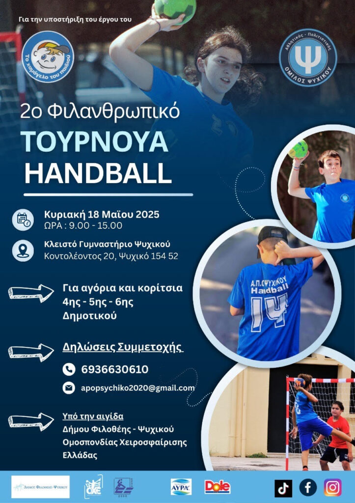 2ο Φιλανθρωπικό Τουρνουά Χάντμπολ – Κυριακή 18 Μαΐου