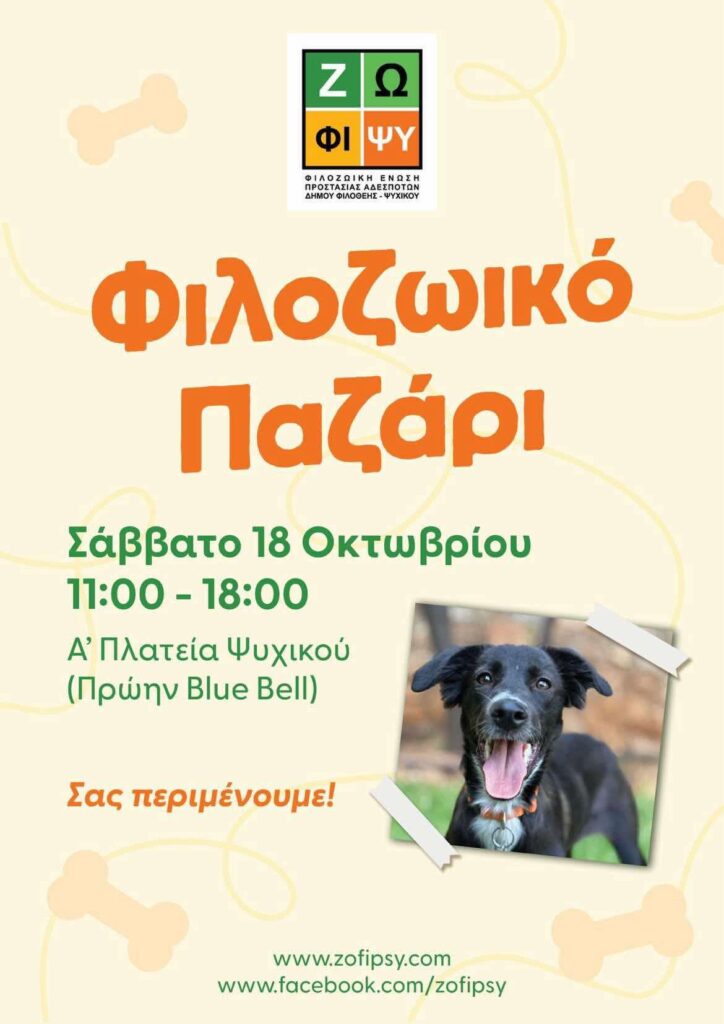To Φιλοζωϊκό Παζάρι της Ζω.Φι.Ψυ. επιστρέφει το Σάββατο 18 Οκτωβρίου