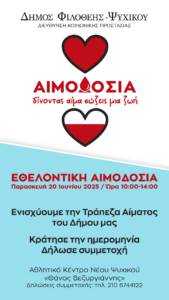 Εθελοντική Αιμοδοσία Δήμου Φιλοθέης Ψυχικού – Παρασκευή 20 Ιουνίου