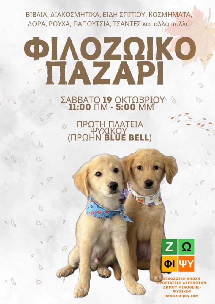 Φιλοζωϊκό Παζάρι της Ζω.Φι.Ψυ. – Σάββατο 19 Οκτωβρίου