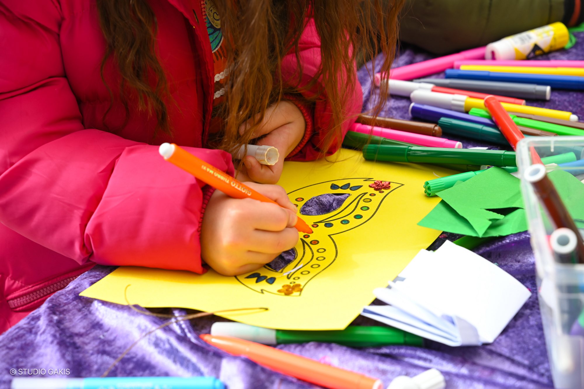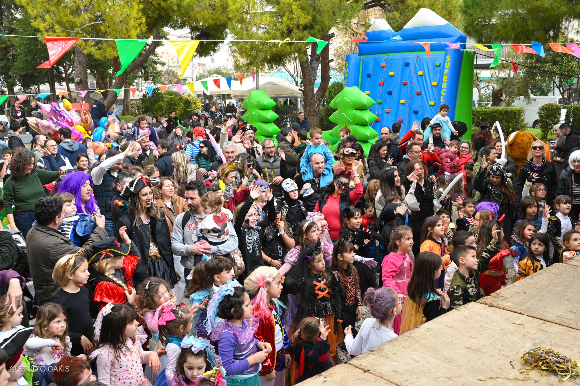 Το πρόγραμμα περιλάμβανε αποκριάτικες δράσεις για όλες τις ηλικίες: γαϊτανάκι με ξυλοπόδαρους, μασκότ και μουσικούς, face painting, μπαλονάδες, εργαστήρια κατασκευών (μάσκες και χαρταετοί), bubble show, μάγο, σοκολατοπόλεμο, καθώς και φουσκωτά παιχνίδια και δραστηριότητες όπως air hockey, ποδοσφαιράκι, διπλή μπασκέτα και τοξοβολία.