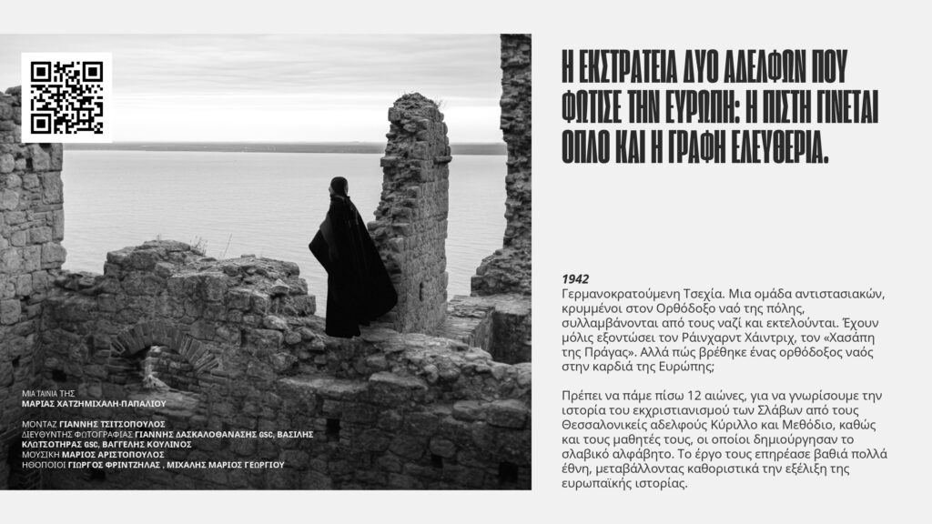 Το νέο δραματοποιημένο ντοκιμαντέρ «Κύριλλος και Μεθόδιος – Οι φωτιστές των Σλάβων» της Μαρίας Χατζημιχάλη – Παπαλιού προβάλλεται υπό την Αιγίδα του Δήμου Φιλοθέης – Ψυχικού από τις 20 Νοεμβρίου στον κινηματογράφο Δαναός στην Αθήνα
